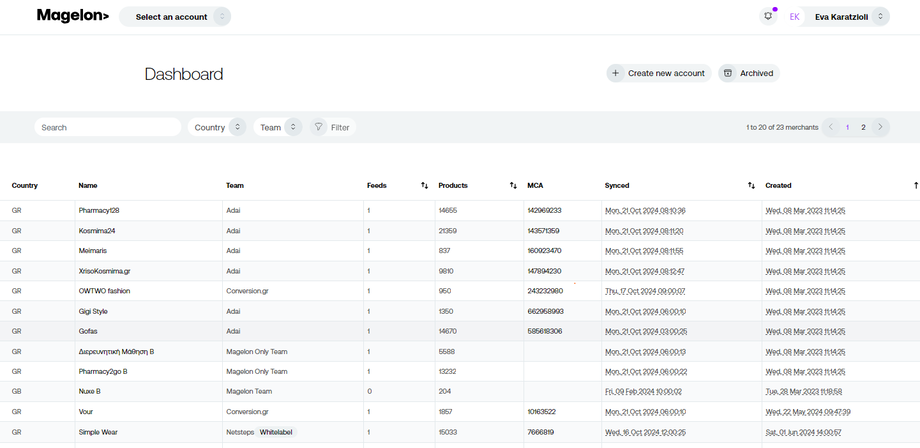 *Regarding the team column: Magelon Feeds allows you to create various teams with different members and assign merchants to these teams. This feature enables agencies, for example, to organize their work based on client relationships and efficiently manage tasks.