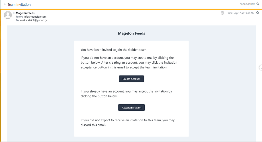 The new member will receive an email invitation to accept. Once accepted, they can log in to Magelon Feeds.