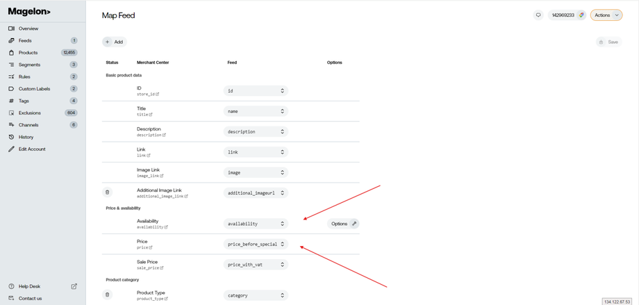 For example the fields of price and sale price are already mapped to the correct fields of the feed.